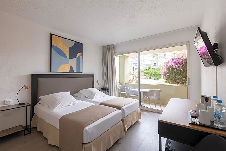 Confort is 215 square feet and includes either a double bed 131-150 width or 2 single beds 80-130 width plus hairdryer.